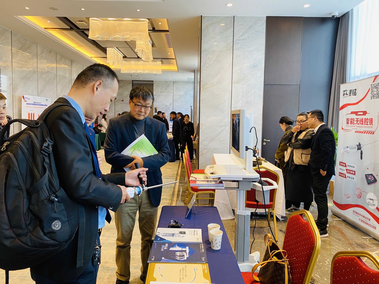 大會(huì)現(xiàn)場(chǎng)德銘展臺(tái)吸引多位泌尿外科領(lǐng)域醫(yī)學(xué)大咖紛紛駐足,在試用智能無(wú)線腔鏡后,各位專家均給予了一致好評(píng):“無(wú)線腔鏡突破傳統(tǒng)腔鏡線纜束縛,將光源導(dǎo)光束線和攝像頭電源線等高度集成于一體,在帶來(lái)操作便捷的同時(shí),成像顯示效果卻沒(méi)有因此打折,未來(lái)在微創(chuàng)外科手術(shù)中應(yīng)用前景廣闊”。