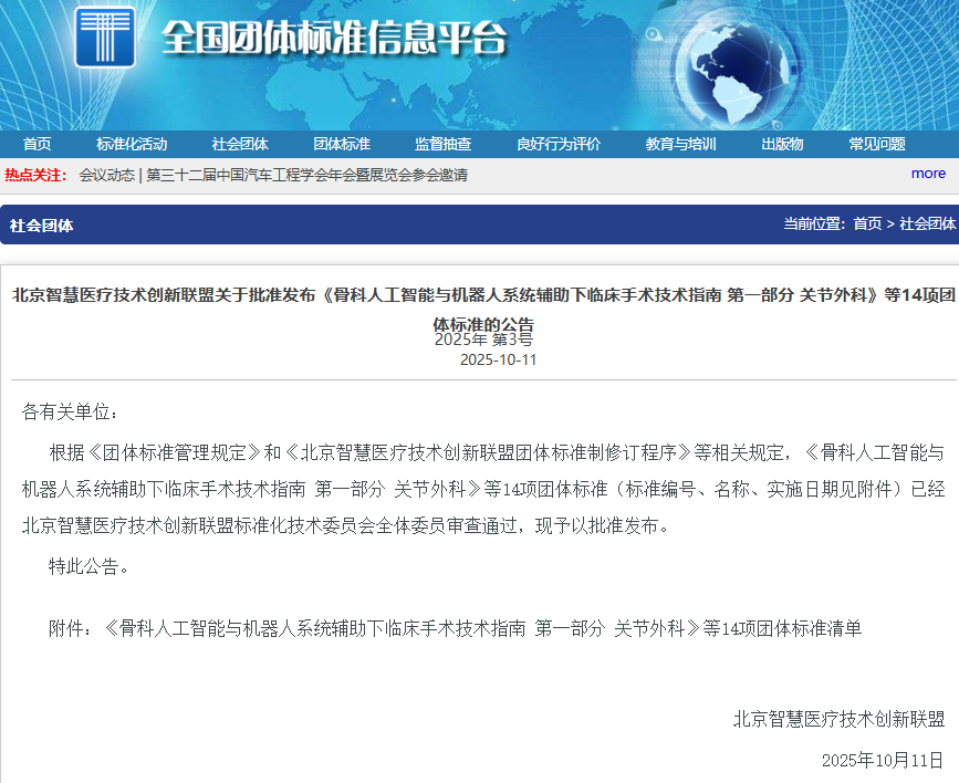 近日,北京智慧醫(yī)療技術(shù)創(chuàng)新聯(lián)盟批準(zhǔn)發(fā)布14項團(tuán)體標(biāo)準(zhǔn),其中由合肥德銘電子有限公司、合肥德易電子有限公司參與起草的《智慧手術(shù)室全流程數(shù)字化管理技術(shù)規(guī)范》和《智慧病房數(shù)字化建設(shè)和運維管理規(guī)范》2項團(tuán)體標(biāo)準(zhǔn)發(fā)布,并將于2025年12月31日正式實施。